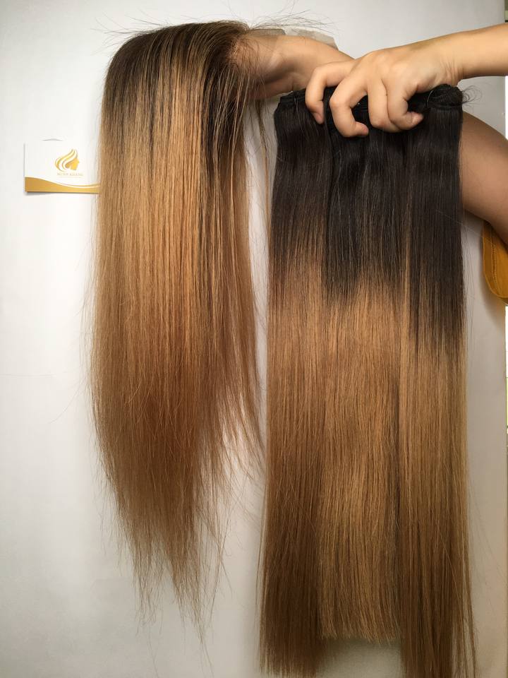 ใหม่2024ผมต่อ100% เหมือนผมมนุษย์ผมต่อจากเวียดนามสีอ่อนสำหรับวิกผมตรงเป้าหมาย