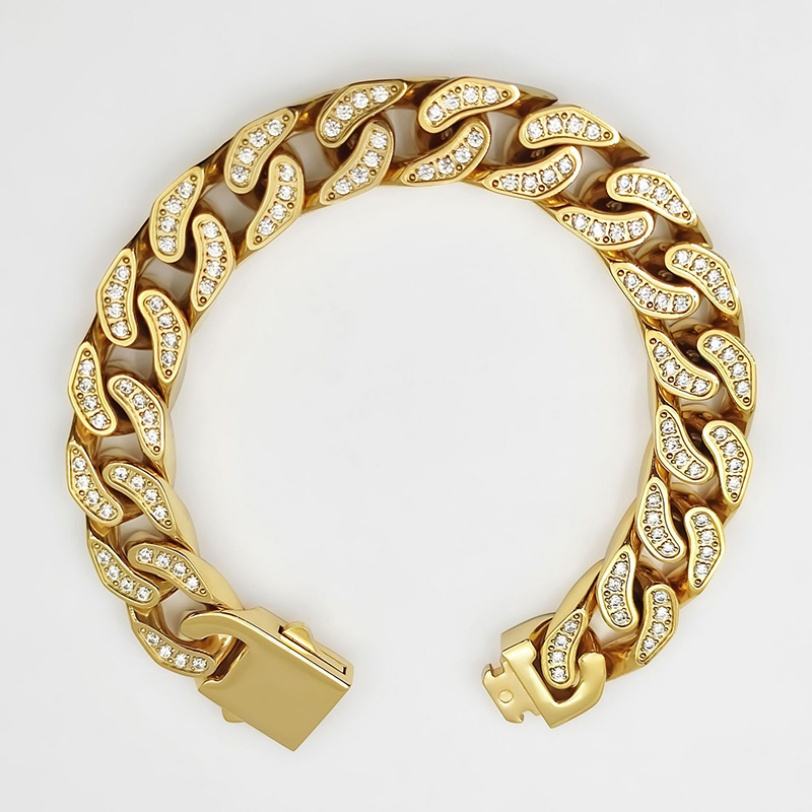 กำไลข้อมือคิวบาโมอิสซาไนต์ 12 มม. สแตนเลสขัดเงาคุณภาพสูง ป้องกันอาการแพ้ ดีไซน์ใหม่ปี 2024 ขายส่งแฟชั่น