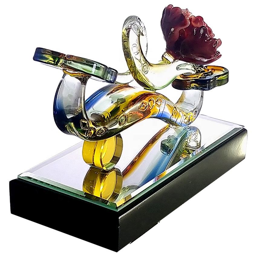 ดอกกุหลาบแก้วมูราโน่เป่าด้วยมือ ดีไซน์ใหม่ปี 2024 ขนาด 16-25 ซม. งานแกะสลักหลากสีสัน สำหรับตกแต่งวันหยุดและเป็นของขวัญ