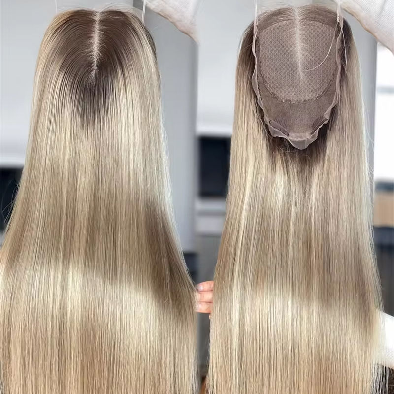 2024 ออกแบบใหม่Salon Stylistสีสีบลอนด์Ombreมนุษย์T OppersผมดิบVirginมนุษย์ผม 8*8 เต็มลูกไม้Wig Mini