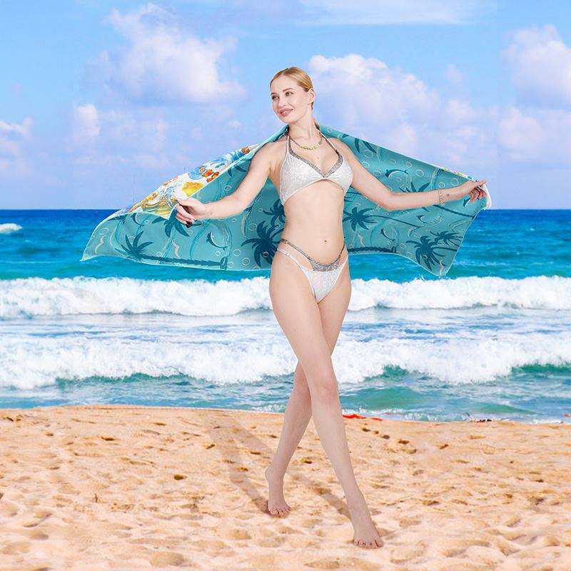 ผ้าขนหนูชายหาดแบบแห้งเร็วพร้อมพิมพ์โลโก้ได้ตามต้องการดีไซน์แบบขนสองด้านใหม่2024