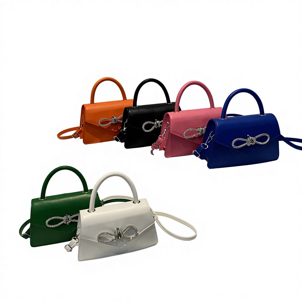 กระเป๋าถือแฟชั่นผู้หญิงปี 2024 หนัง PU ประดับโบว์ สายสะพายโซ่ ซิปปิด สำหรับฤดูร้อน/ฤดูหนาว