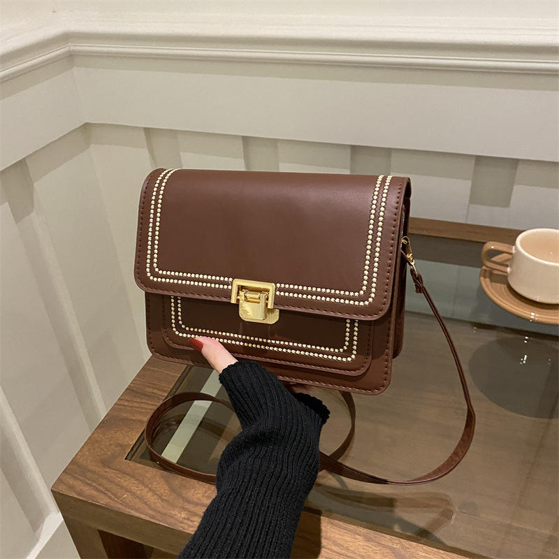 กระเป๋าถือสะพายไหล่ผู้หญิงแฟชั่นเกาหลีปี 2024 หนัง PU แบบซิปเดียว ดีไซน์ทรงเหลี่ยมเล็ก