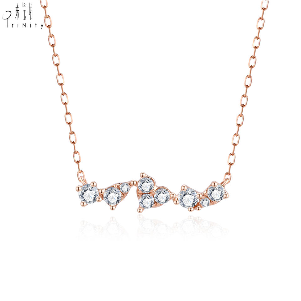 สร้อยคอจี้เพชรแท้ ทองชมพู 18K ดีไซน์ทันสมัย เหมาะสำหรับใส่เป็นเลเยอร์