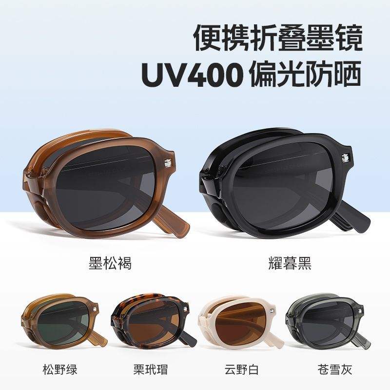 แว่นกันแดดทรงแคทอายแบบพับได้ รุ่นใหม่ปี 2024 กรอบเต็มวงกลม เลนส์ PC ป้องกันรังสียูวี 400 กรอบสีเทา สำหรับทุกเพศ