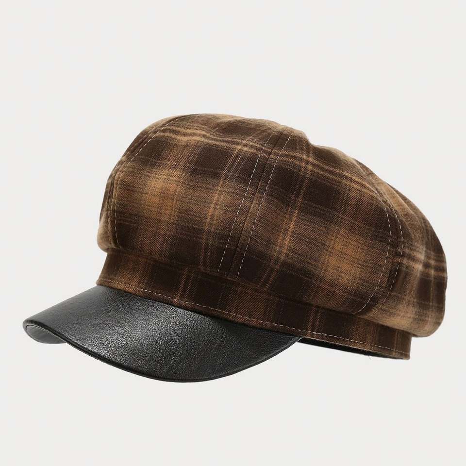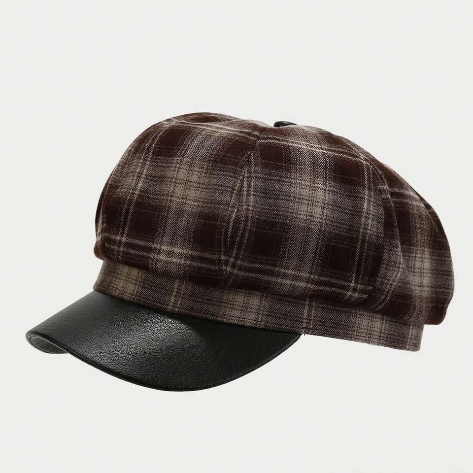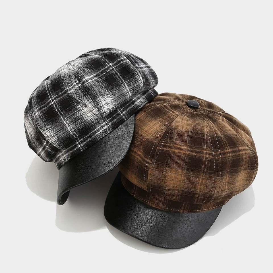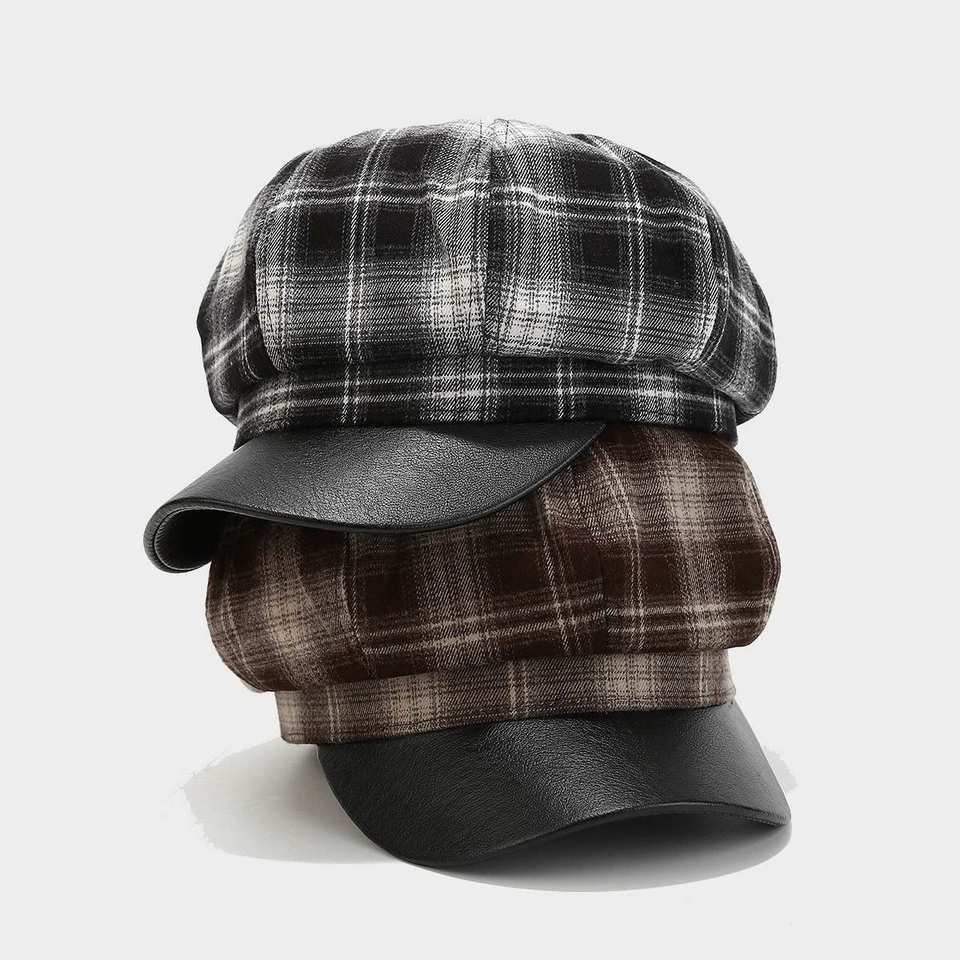 หมวกทรงนิวส์บอยสไตล์วินเทจญี่ปุ่นปี 2024 ลายตาราง 8 ชิ้น แฟชั่นลายสก็อตสำหรับผู้หญิง