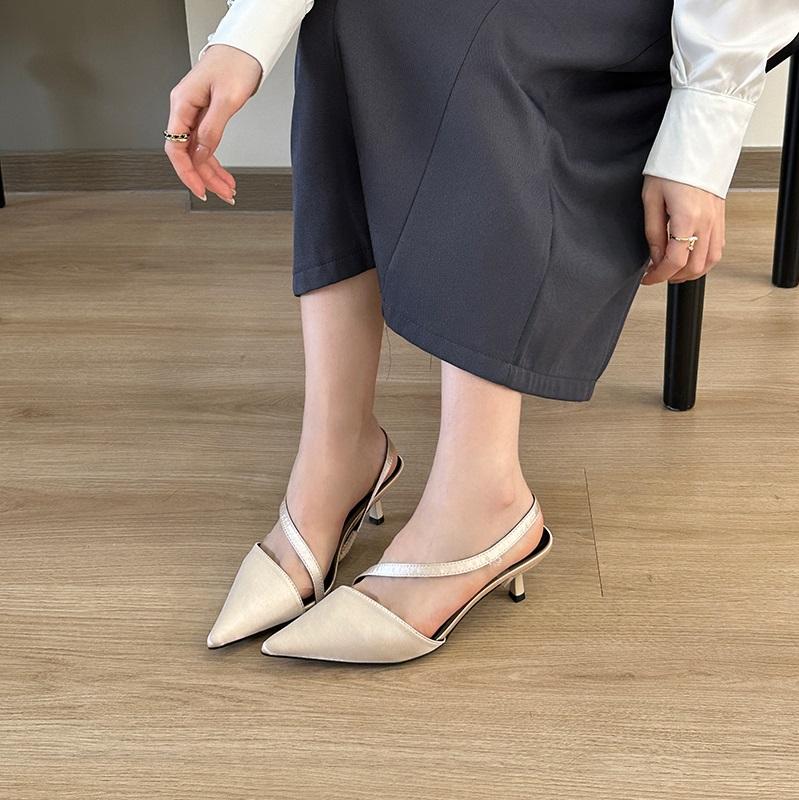 2024 New Kitten Heel Designer New Fashion Shoes Heels Talons Femmes Pointed Toe Sandals for Women