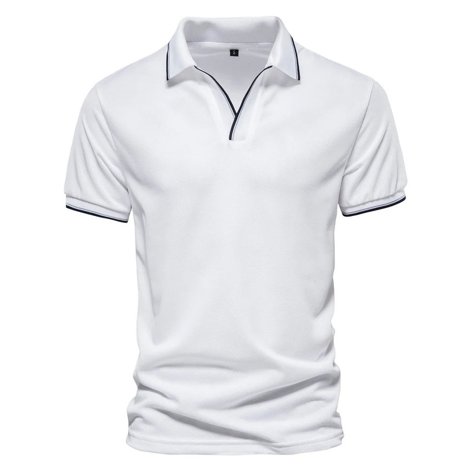 2024ใหม่เสื้อลำลองคอวีเข้ารูประบายอากาศได้ดีสำหรับผู้ชายเสื้อผ้าฝ้ายสไตล์สตรีทสูงสีพื้นสำหรับฤดูร้อน