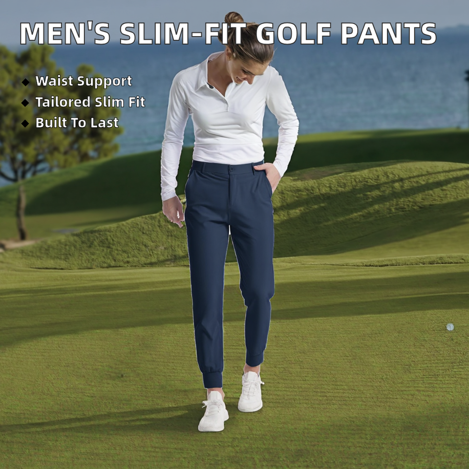 กางเกงขายาวลำลองผู้ชายแบบยืดหยุ่น รุ่นใหม่ปี 2024 เหมาะสำหรับเล่นกอล์ฟ วิ่งจ๊อกกิ้ง ทรงปกติ มีกระเป๋า กันน้ำ เอวสูง ซิปผ่าหน้า ทรงตรง ผ้า Worsted