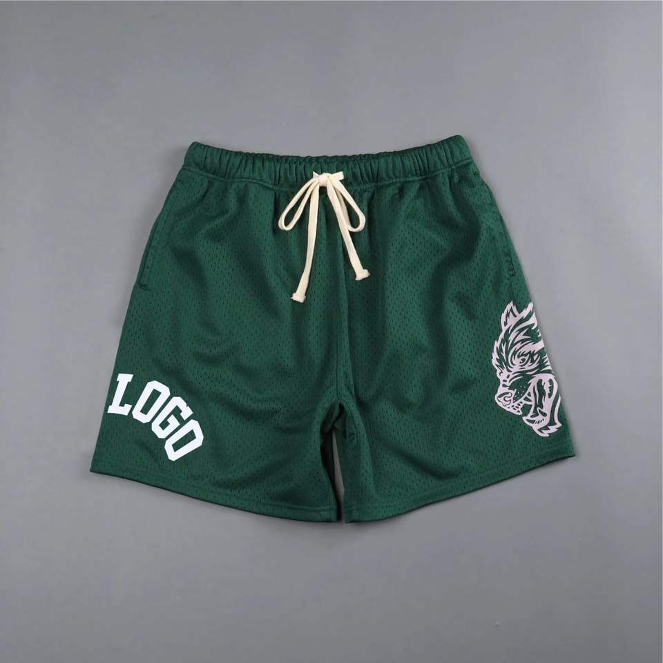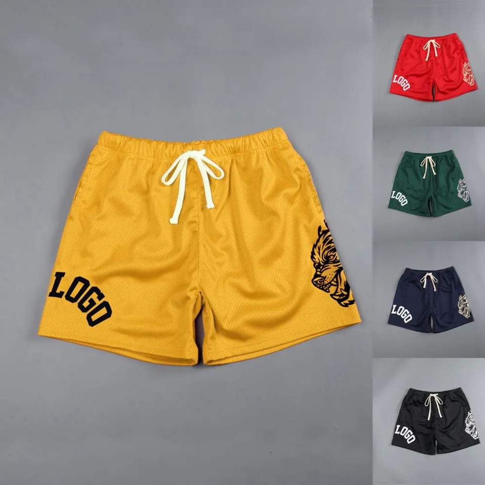 กางเกงขาสั้นชายหาดสำหรับผู้ชายกางเกงขาสั้นเล่นกีฬาผ้าโพลีเอสเตอร์ตาข่ายแฟชั่นใหม่สำหรับผู้ชาย2024