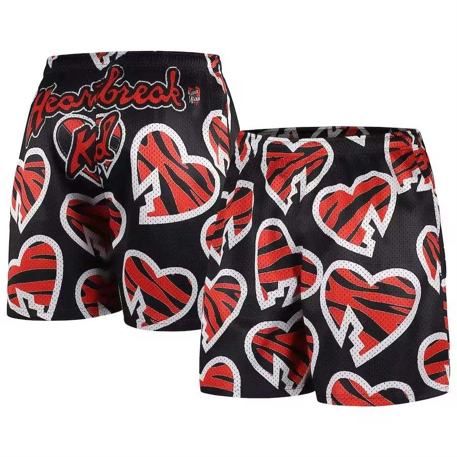 2024ใหม่กางเกงขาสั้นกีฬาโอเวอร์ไซส์แบบย้อนยุคสำหรับผู้ชายกางเกงสีดำแดง-ชอว์นไมเคิล1997ชุดเชือกผูกลำลอง