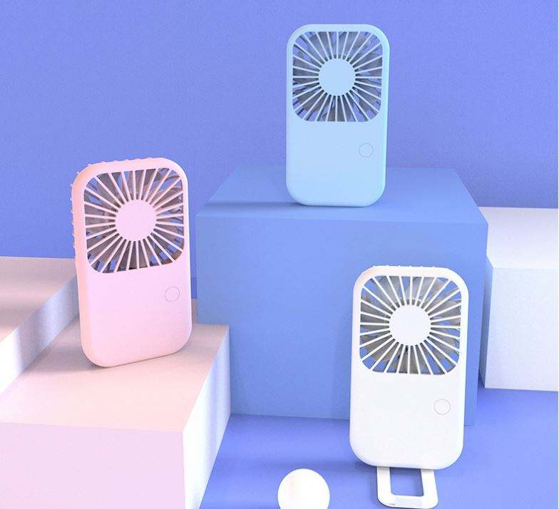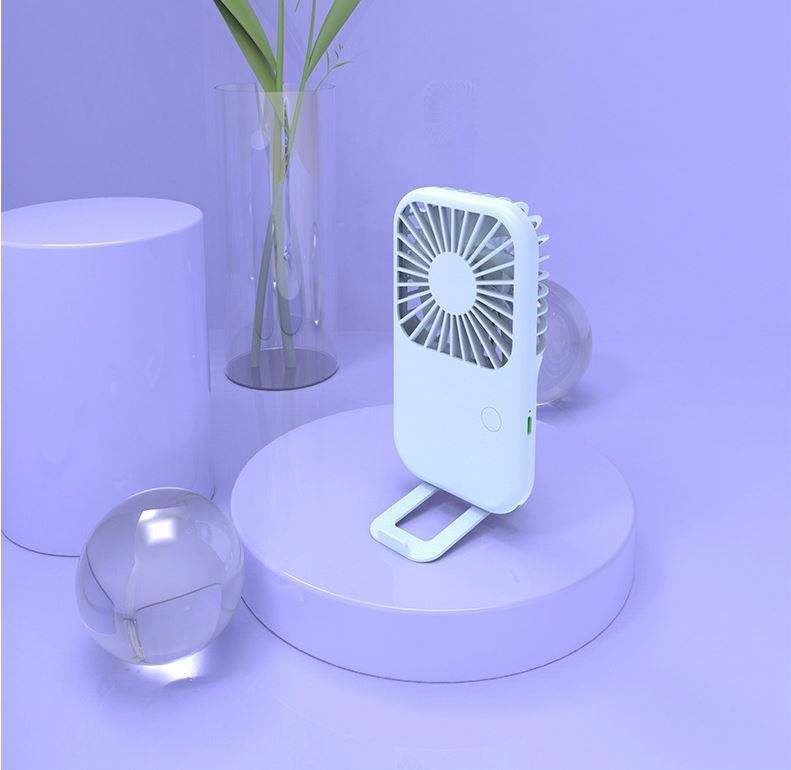 พัดลมพกพาขนาดเล็กแบบพกพา รุ่นใหม่ ปี 2024 ใช้แบตเตอรี่ลิเธียมแบบชาร์จไฟได้ผ่านพอร์ต USB ตัวเครื่องทำจากพลาสติก มีสามระดับความเร็วลม เหมาะสำหรับใช้ในหอพักหรือบนโต๊ะทำงาน