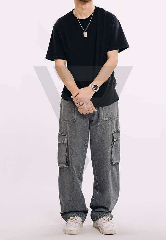 กางเกงยีนส์ขาตรงผ้าฝ้าย100% แนวสตรีทของผู้ชายกางเกงยีนส์ฟอกสีมีกระเป๋าด้านหน้าทรงสลิมฟิตสำหรับฤดูใบไม้ผลิฤดูร้อน2024ใหม่