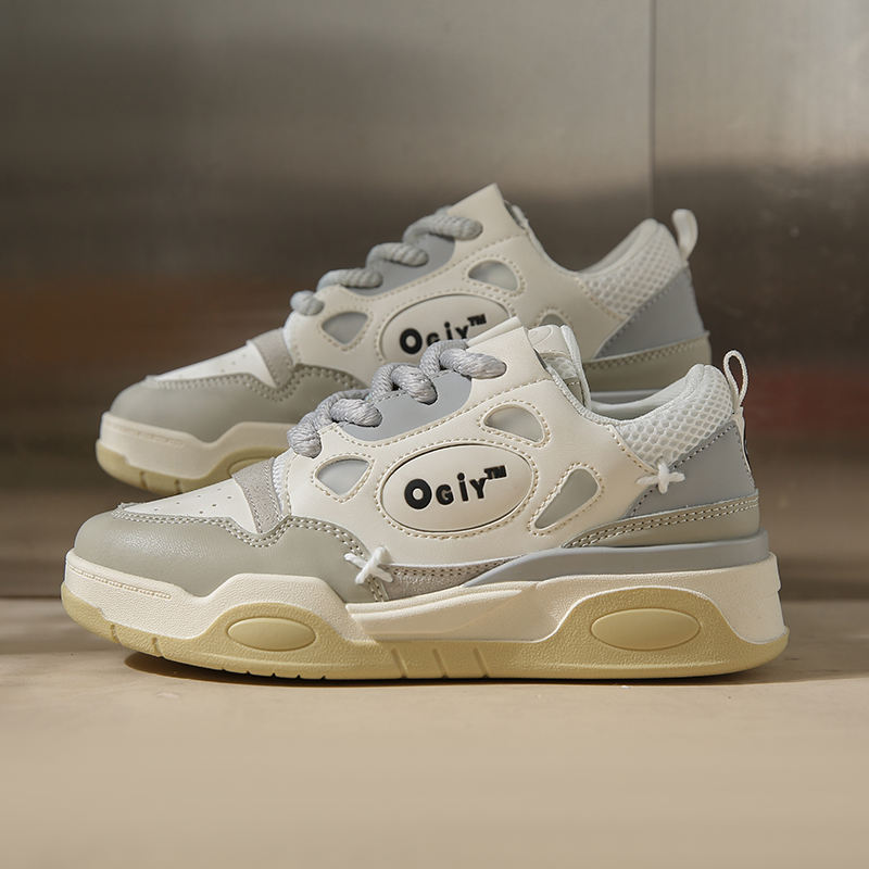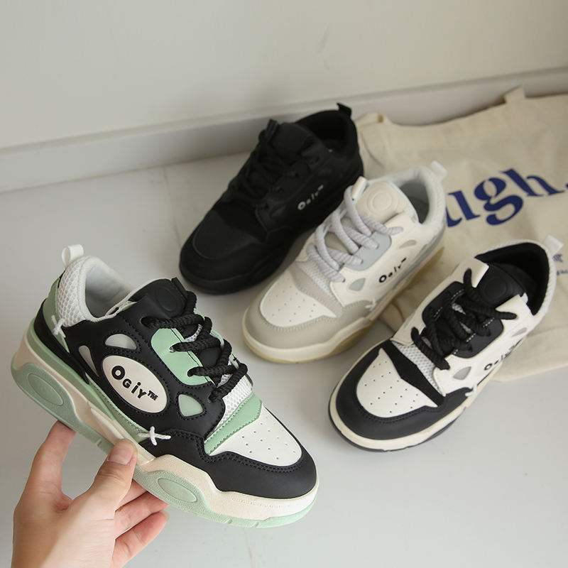 2024รองเท้าส้นตึกสีขาวสำหรับผู้หญิงรองเท้าลำลองส้นหนาแนวสปอร์ตรองเท้าลำลองทันสมัยทันสมัย