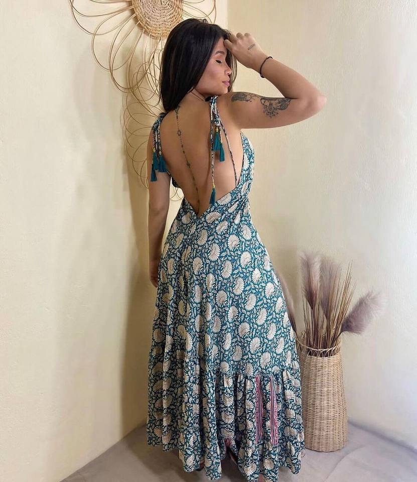 2024 ฤดูร้อนใหม่ดอกไม้พิมพ์แขนกุดผู้หญิงElegant Vintage 100% Cotton BacklessชุดMaxiยาวสําหรับผู้หญิง