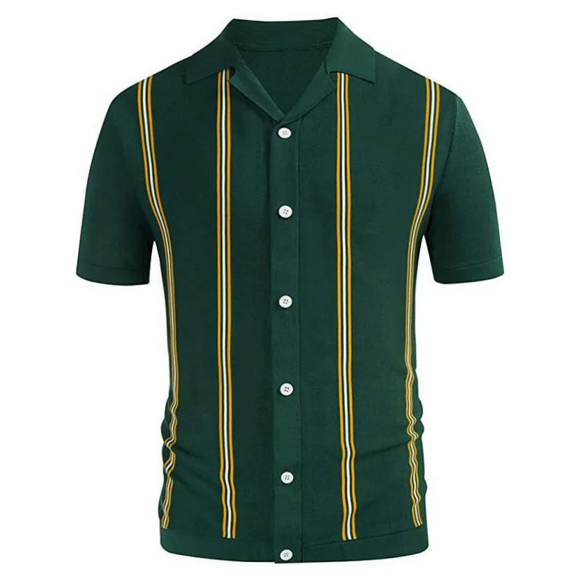 เสื้อสวมหัวแฟชั่นผู้ชายสำหรับฤดูร้อนใหม่2024เสื้อยืดแขนสั้นมีปกพิมพ์ลายทางกระดุมสำหรับโปโลดีไซน์เรียบ