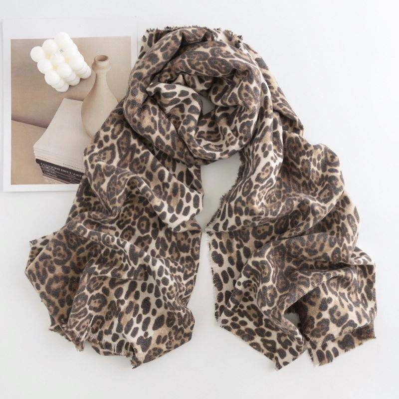 ผ้าพันคอโพลีเอสเตอร์เนื้อนุ่มพิมพ์ลายใบไม้ฤดูหนาวปี 2024 ผ้าพันคออเนกประสงค์อุ่นสบายพร้อมพู่ห้อย รุ่น YHK0036