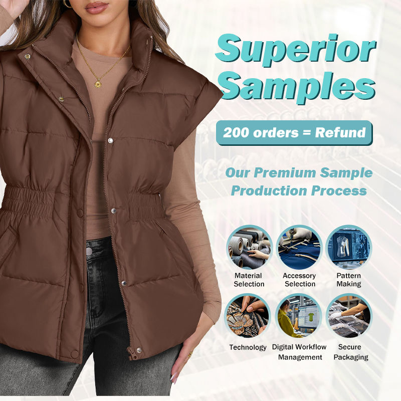 เสื้อกั๊กยืนผูกกับเข็มขัดสีทึบของผู้หญิงเสื้อกั๊กอบอุ่นลำลองใหม่สำหรับฤดูหนาว2024