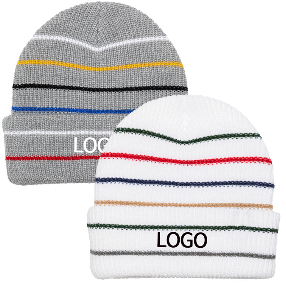 2024 Autumn New Custom Knitted Wool Blend Multi-striped Skullcap Casual and Comfortable Soft Winter Hat