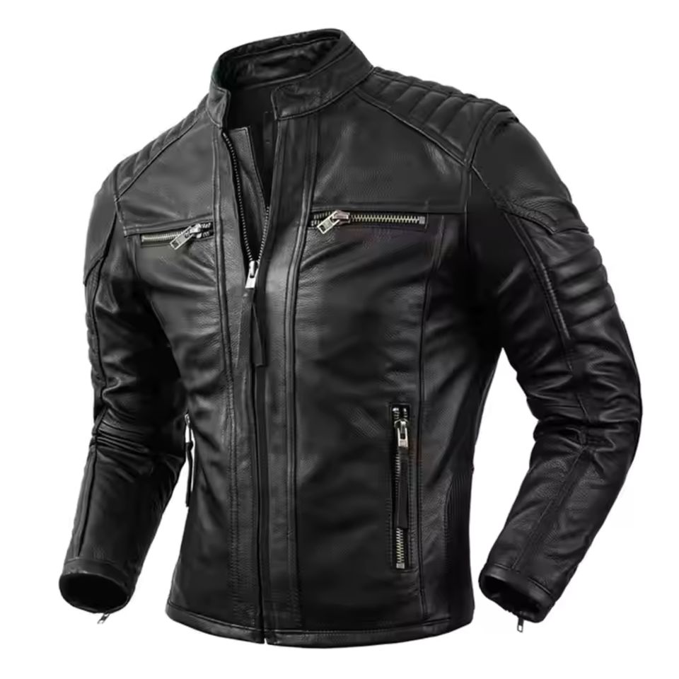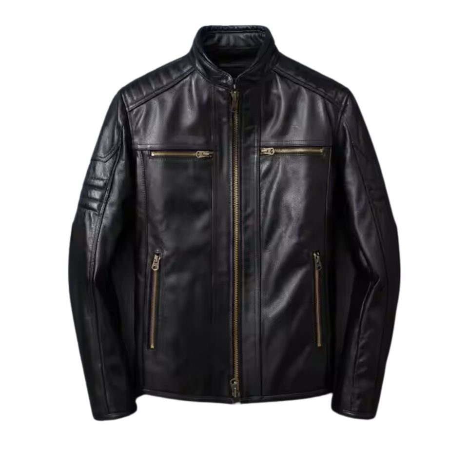 แจ็กเก็ตหนังสีดำสำหรับผู้ชาย, แจ็กเก็ตผ้าแคนวาสสีปกตั้งสำหรับผู้ชายบริการ OEM 2024