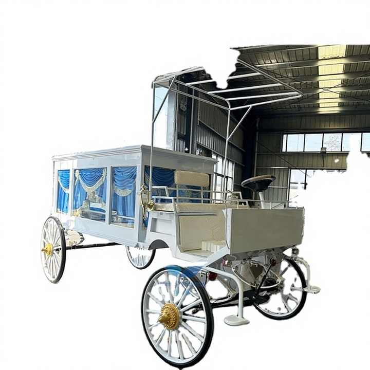รถม้าศพแบบดั้งเดิมสีขาวหรูหรา ปี 2024 ได้รับการรับรองมาตรฐาน CE สำหรับการขนส่งพิเศษ มีขายแล้ว