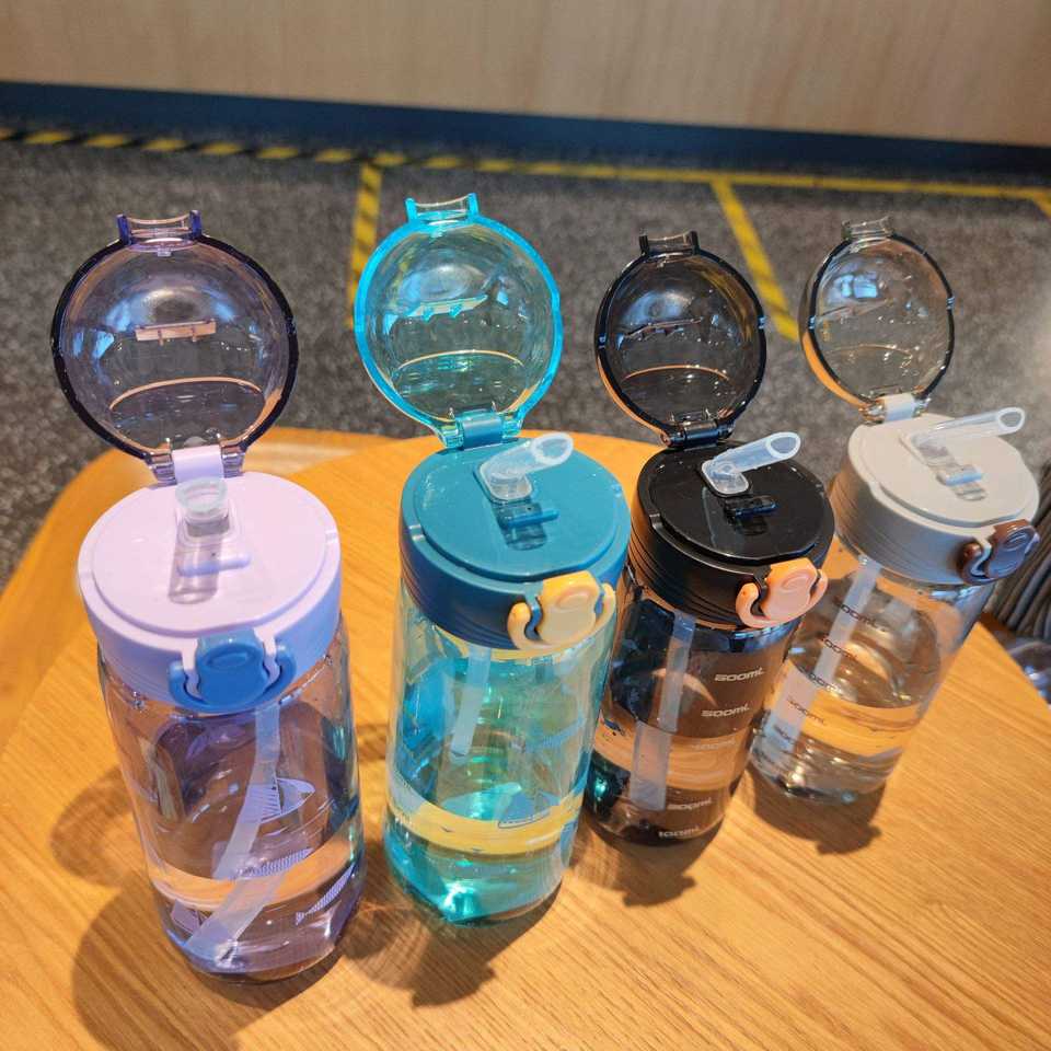 ขวดน้ำ2024ไร้สาร BPA เป็นมิตรกับสิ่งแวดล้อมถ้วยพลาสติกออกกำลังกายขวดน้ำใสแบบพกพาสำหรับนักเรียนใช้ในฤดูร้อน