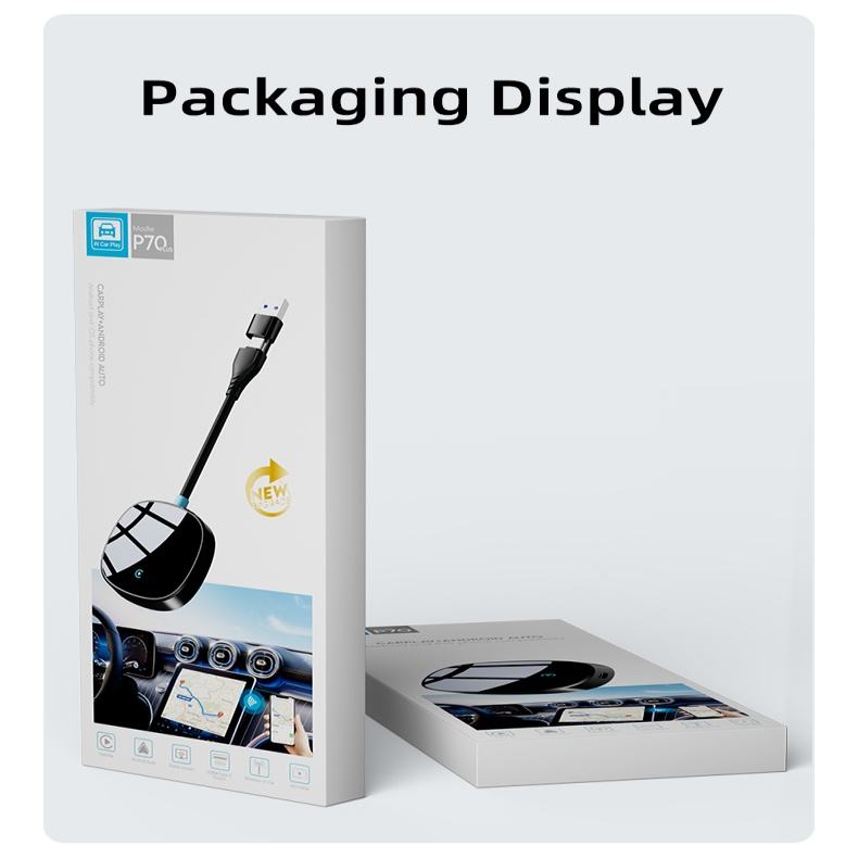 2024 P70บวกแอนดรอยด์ออโต้อะแดปเตอร์ OEM ODM สำหรับเล่นในรถยนต์แบบไร้สายกล่อง Ai แบบพกพา2 in 1สายไร้สาย