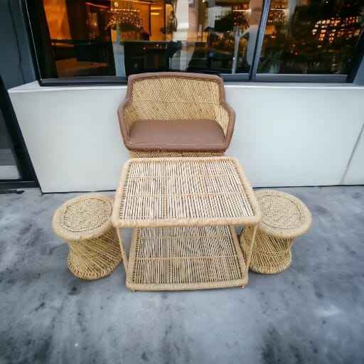 เฟอร์นิเจอร์หวายทำด้วยมือพร้อมโต๊ะกาแฟเฟอร์นิเจอร์ลานโซฟาหวายทำจากไม้ไผ่ทำด้วยมือคลาสสิกเป็นมิตรต่อสิ่งแวดล้อม