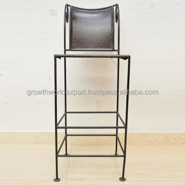 เก้าอี้บาร์อุตสาหกรรมและคาเฟ่สีน้ำตาล (คอมโบเหล็กและหนัง)