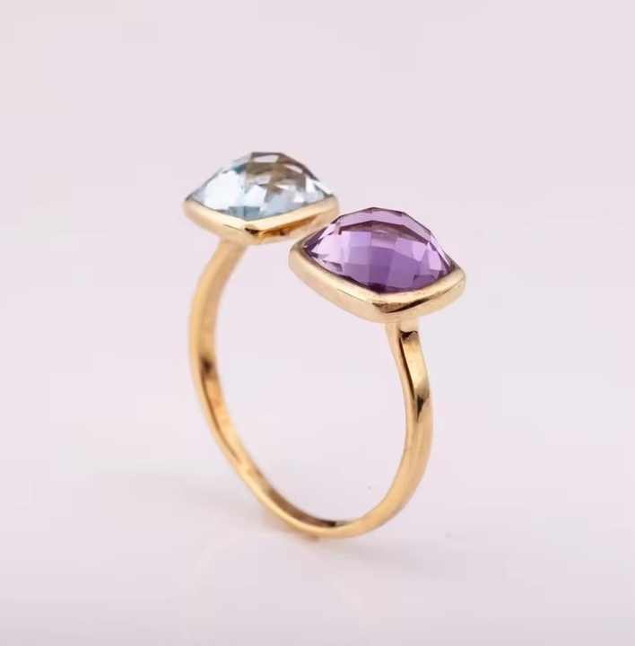 แหวน2024เกรดที่ดีที่สุดพร้อมเพชรโทแพซอเมทิสต์สีฟ้าธรรมชาติ925เงินและทองคำ14K ชุบโรเดียมสำหรับงานเลี้ยง