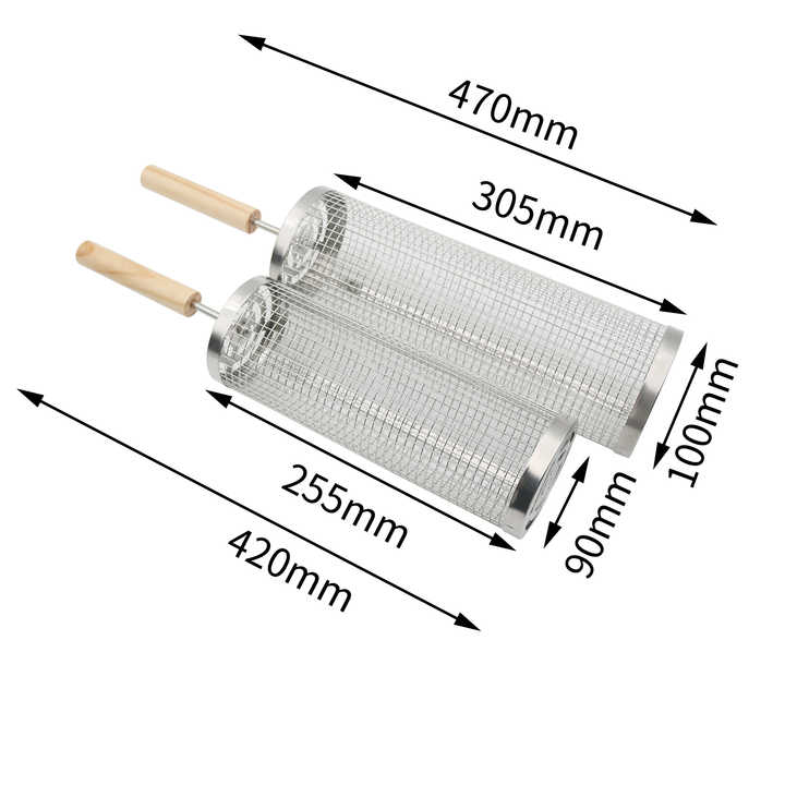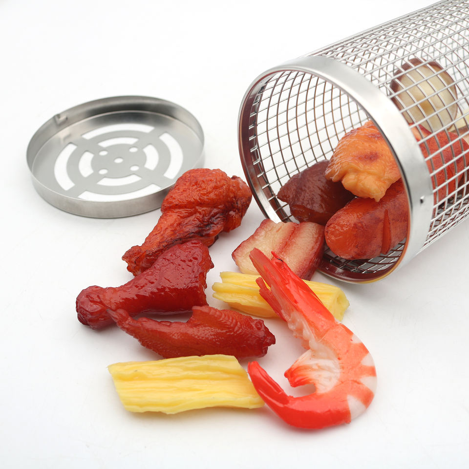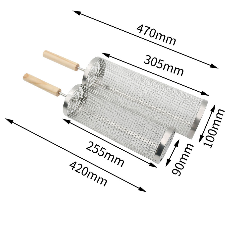 สินค้าปี 2024 อุปกรณ์บาร์บีคิว 304 กระบอกสแตนเลส ชั้นวางบาร์บีคิว ตะกร้ากลิ้ง ย่าง