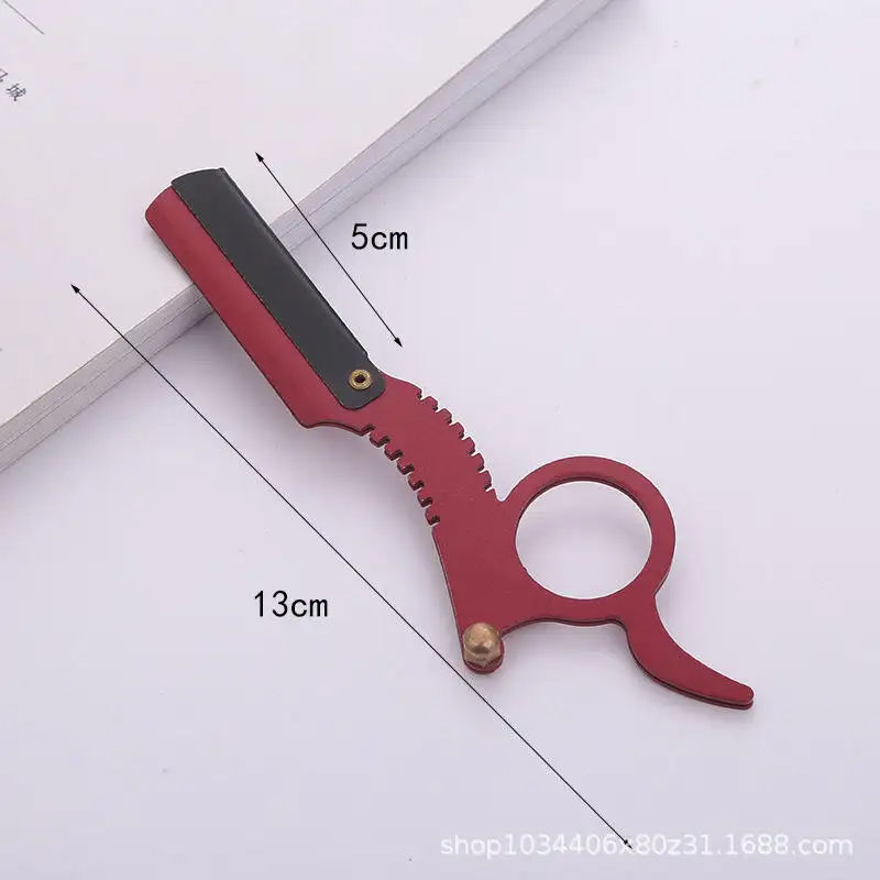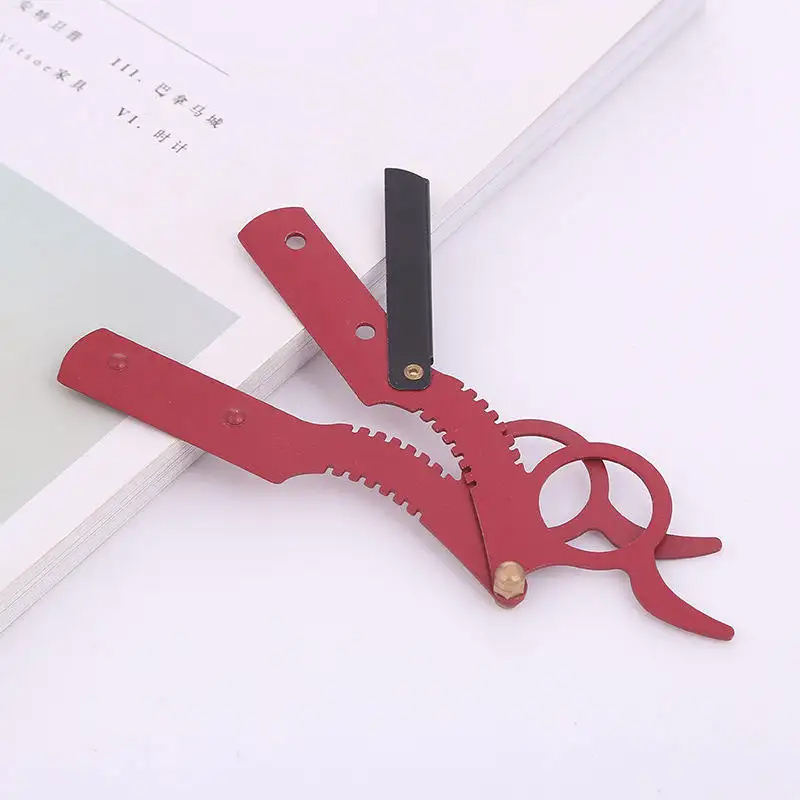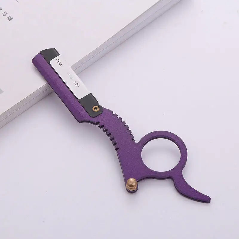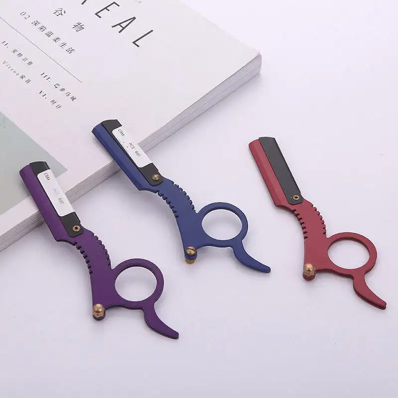 มีดโกนตัดผมด้วยมือพับได้ทำจากสแตนเลสแบบมืออาชีพใช้ซ้ำได้เครื่องมือโกนคิ้วสำหรับร้านเสริมสวย