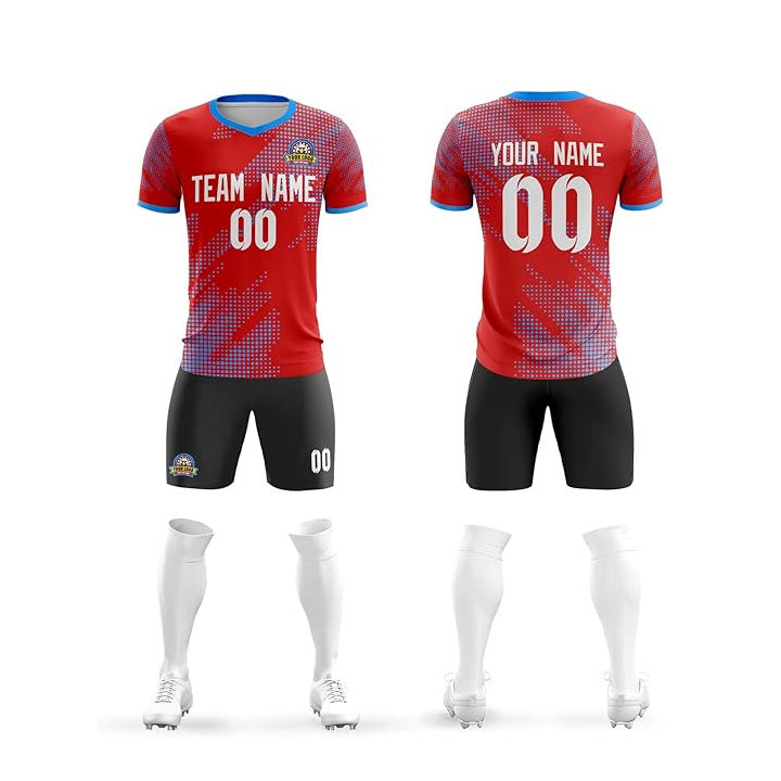 เสื้อ2024ฟุตบอลสำหรับผู้ชายชุดเสื้อและเสื้อสั้นแห้งเร็วสีแดงดำพิมพ์ลายได้ตามต้องการ