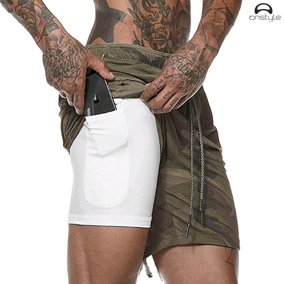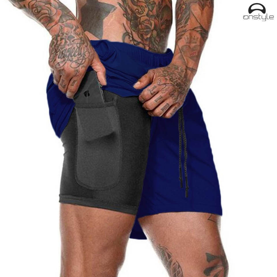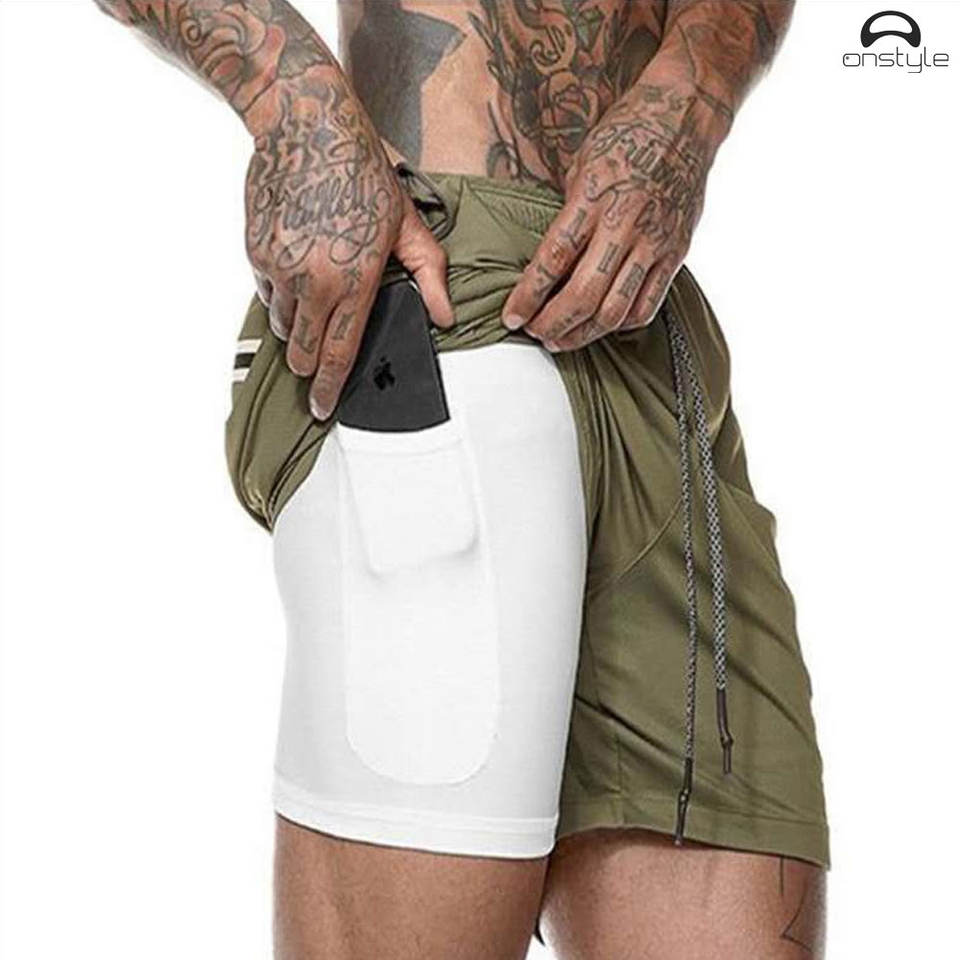 กางเกงขาสั้น2025สำหรับผู้ชายแห้งเร็วแบบ2 in 1กางเกงขาสั้นสำหรับวิ่งออกกำลังกายฟิตเนสยิมฟิตเนสวิ่งมีกระเป๋า