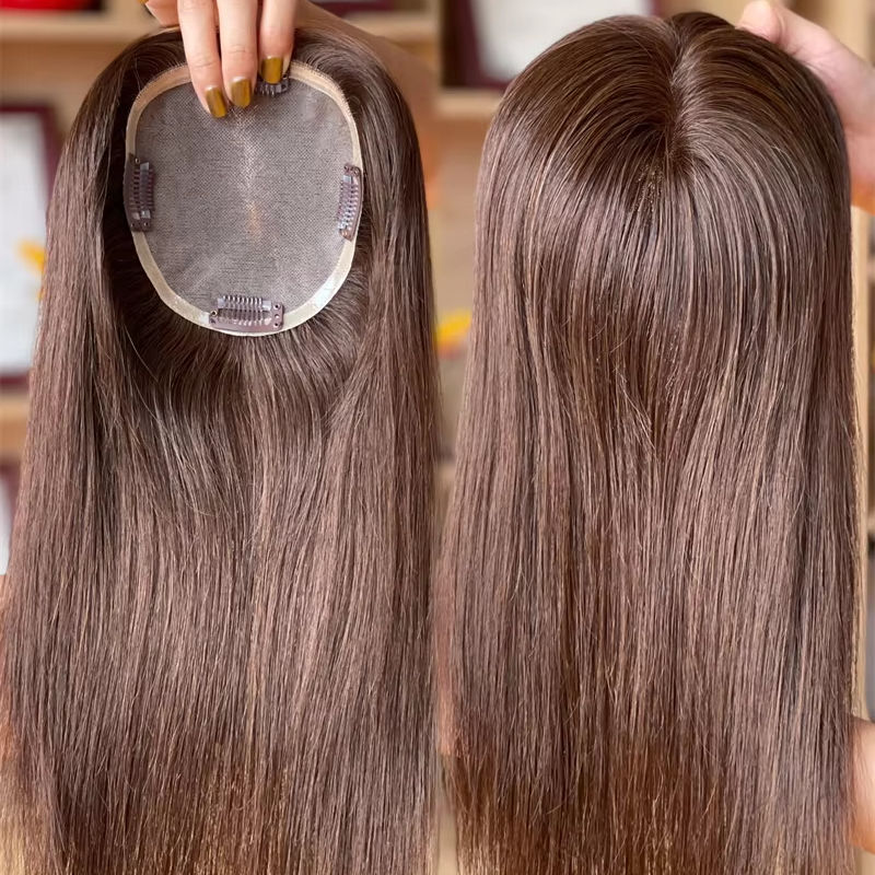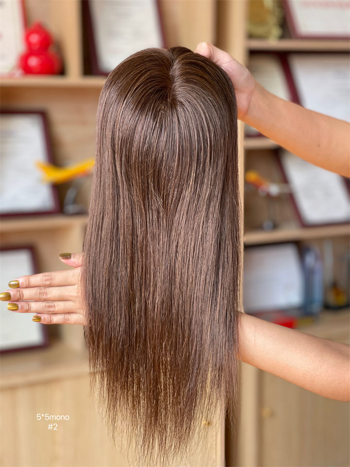 แฮร์โทเปอร์ยอดนิยม2024ขี้อาย5*5นิ้วท็อปเปอร์โมโน100% สีผมมนุษย์ #2นุ่มสลวยสำหรับผู้หญิง