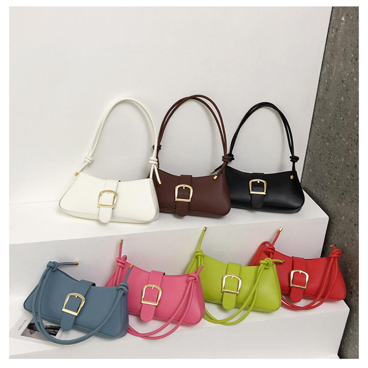 กระเป๋าถือและกระเป๋าถือสำหรับผู้หญิงกระเป๋าทรงอานม้าสีลูกกวาดใต้วงแขน2024ใหม่