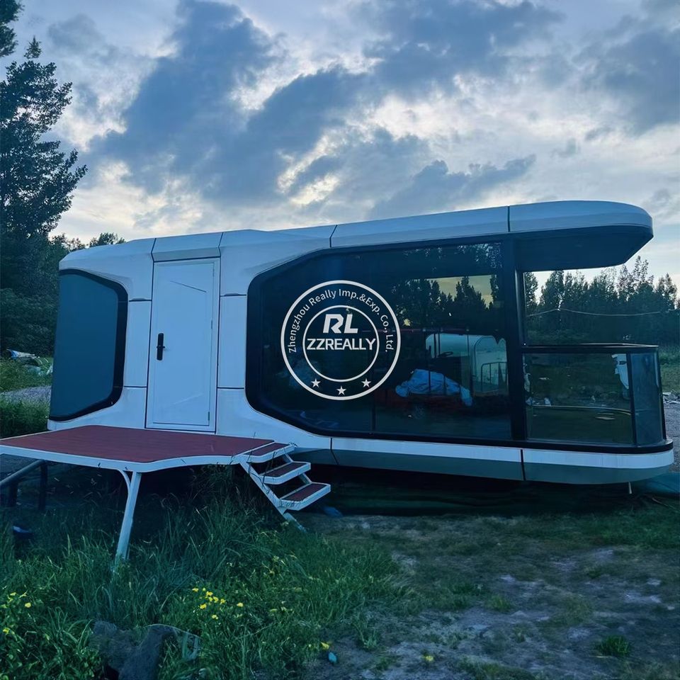 ไม้วีเนียร์อลูมิเนียมรูปวิวจีนแบบบูรณาการบ้านสำเร็จรูปกลางแจ้งสถานที่ท่องเที่ยวสถานที่ท่องเที่ยวริมทะเลคุณสมบัติอัจฉริยะของโรงแรมแคปซูล
