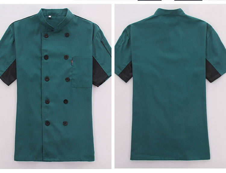 ชุดเชฟแฟชั่น2024แขนสั้นเสื้อเชฟผ้าฝ้ายผ้ายืดสีดำพิมพ์โลโก้