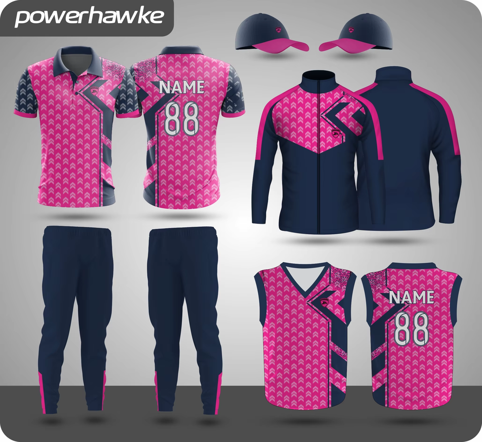 2024ชุดคริกเก็ตเสื้อครึ่งแขนเสื้อคอปกเสื้อพิมพ์ลายดีไซน์เรียบง่ายและสวยงามพร้อมกางเกง