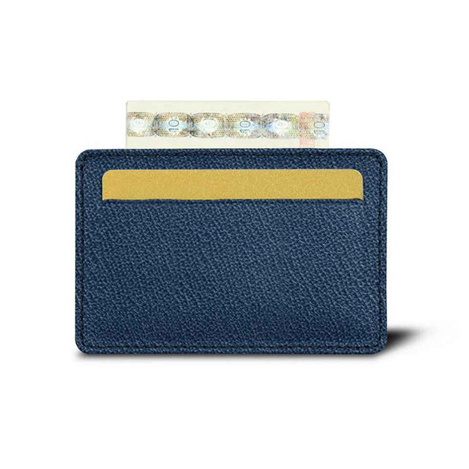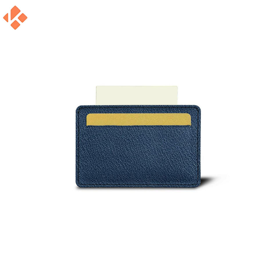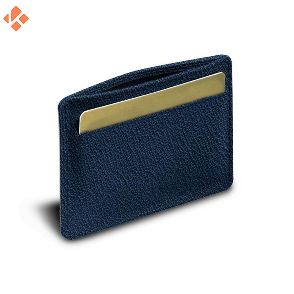 กระเป๋าสตางค์หนังแท้ขนาดเล็กบางสีฟ้า2024สำหรับผู้ชายที่ใส่บัตรแบบมินิมอลลิสต์พร้อมบัตรเครดิตคุณสมบัติของขวัญสุดหรู