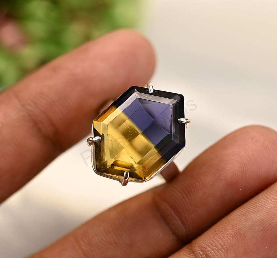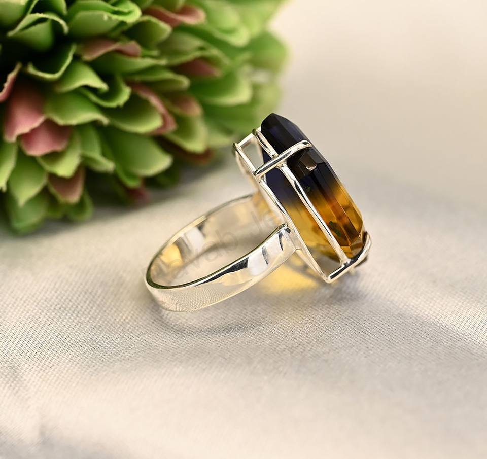 925 Sterling Silver Ametrine Quartz Bio Color Ring