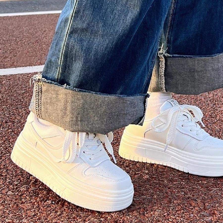 2024 Spring New Women's Little White Thick-Soled Height Increasing Shoes Trendy Versatile Casual Sports Shoes