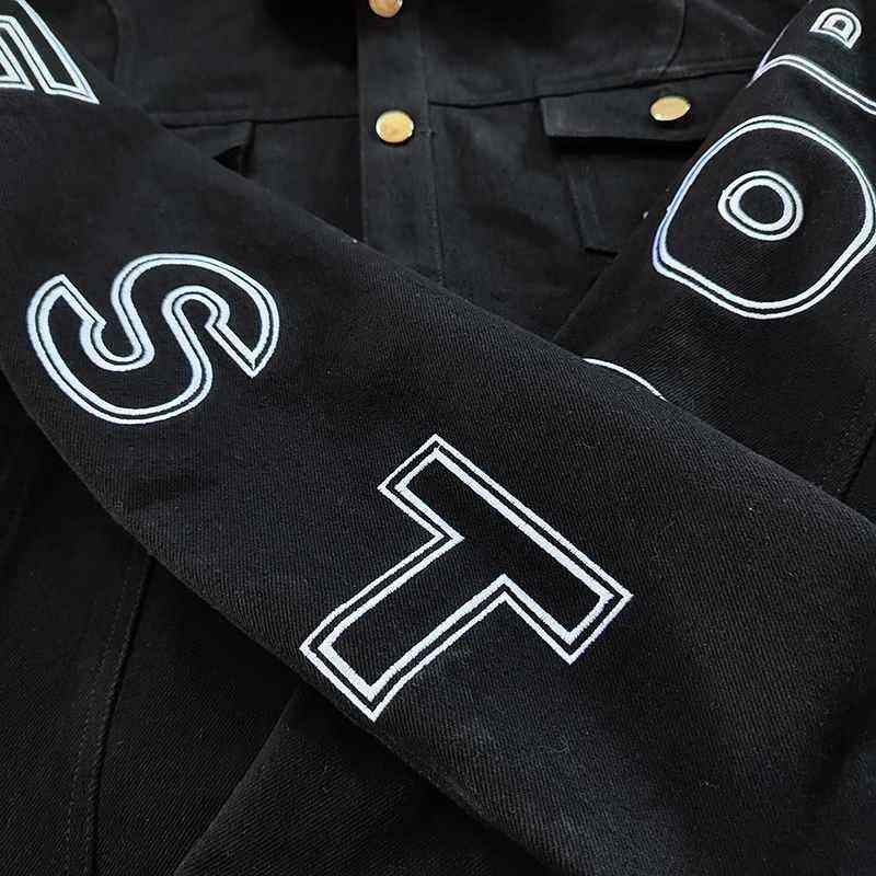 เสื้อแจ็คเก็ตยีนส์สไตล์สตรีทแวร์ผู้ชายแฟชั่นปี 2024 แบบสั่งทำพิเศษ ลุคขาดๆ เซอร์ๆ ทรงเรียบง่าย ทันสมัย