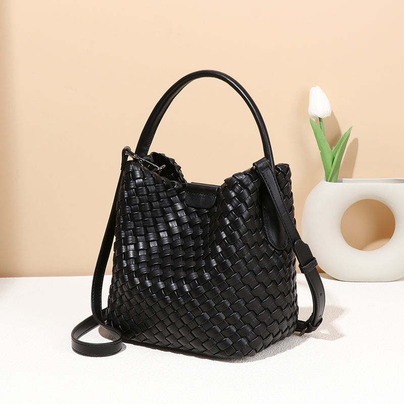 คอลเลคชั่นฤดูร้อน 2024 กระเป๋าโท้ทลำลองหนังงูแท้ทอมือ ซิปคู่ ดีไซน์หรูหราเบาๆ แฟชั่นสะพายไหล่ กันน้ำ ทนทาน