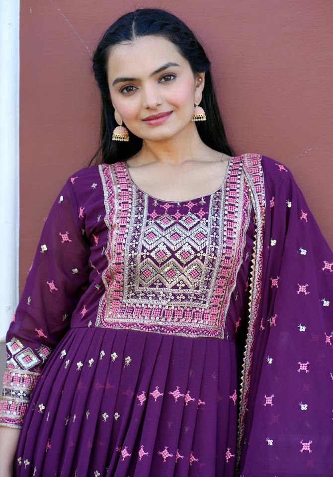 2024ชุดเดรสผ้าจอร์เจียปักลายคอกลมยาวคลุมถึงพื้นลายหมาจิ้งจอกซักได้มีการออกแบบลายทอเป็นลำดับสำหรับฤดูร้อน