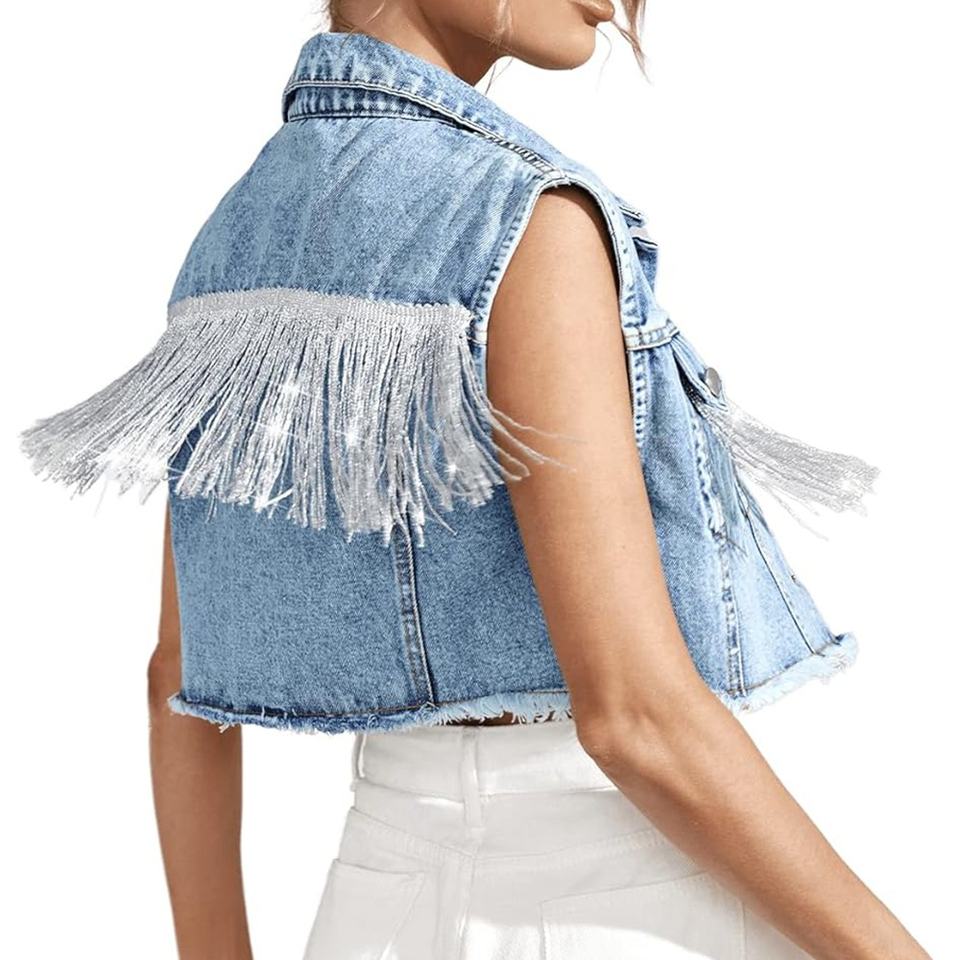 เสื้อกั๊กยีนส์คอตตอนแขนกุดสำหรับผู้ชายและผู้หญิงปักโลโก้เสื้อกั๊กปรับแต่งได้สำหรับฤดูร้อน2024