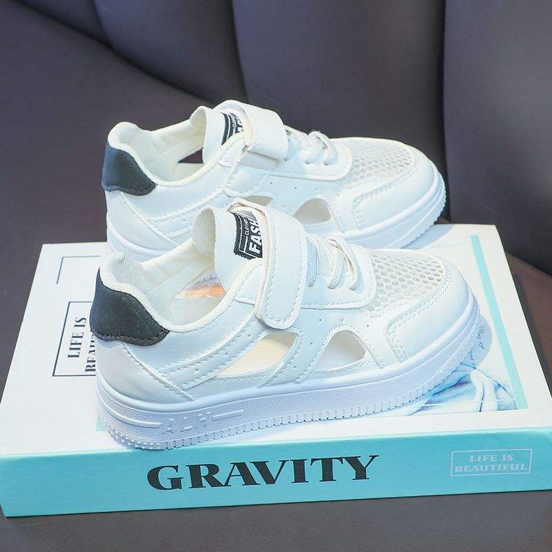 รองเท้าผ้าใบสำหรับเด็กผู้ชายสีขาว, รองเท้าตาข่ายระบายอากาศได้ดีสำหรับฤดูร้อน2024