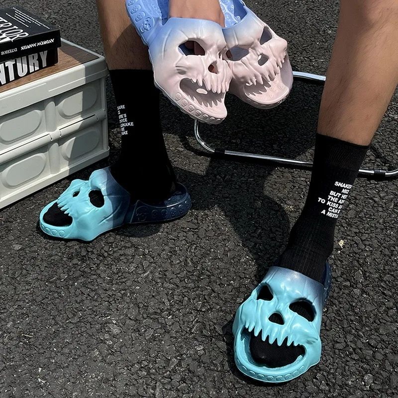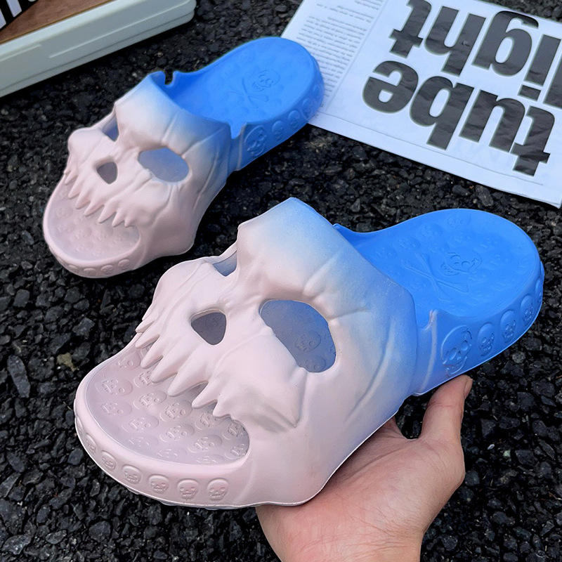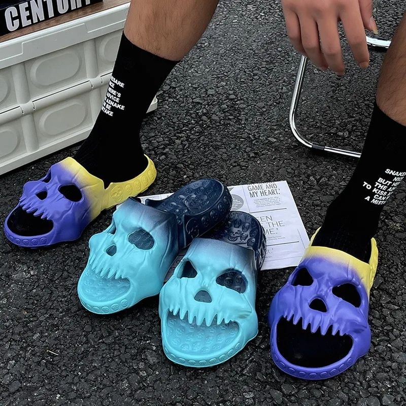 2024 ฤดูร้อนส่วนบุคคลTie-Dye Skullสไลด์สําหรับชายนุ่มEVAสามารถรองเท้าแตะแบนUnisex Beachรองเท้าแตะสบายๆคู่Flip Flop