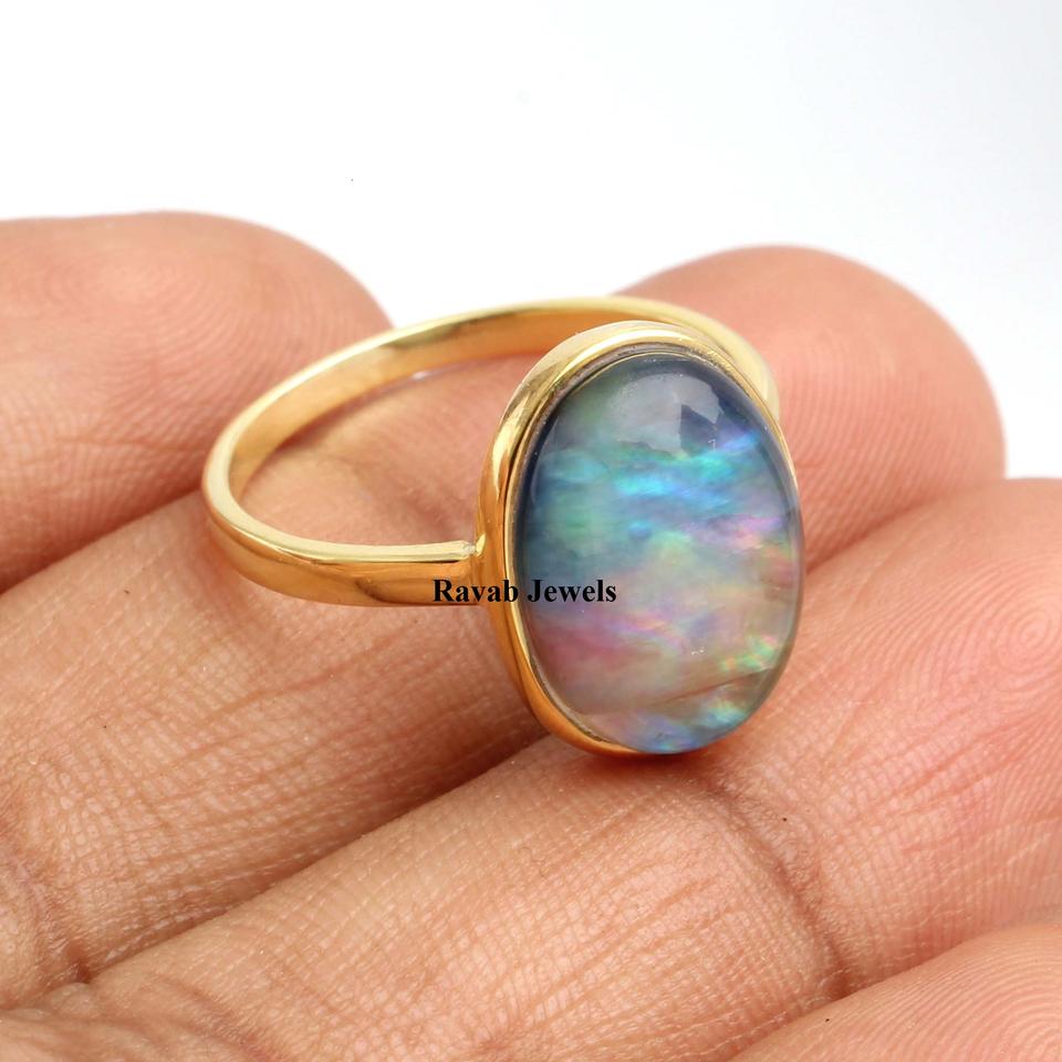 ชื่อผลิตภัณฑ์:แหวนเงินอัญมณีควอตซ์เปลือกหอยเป๋าฮื้อ