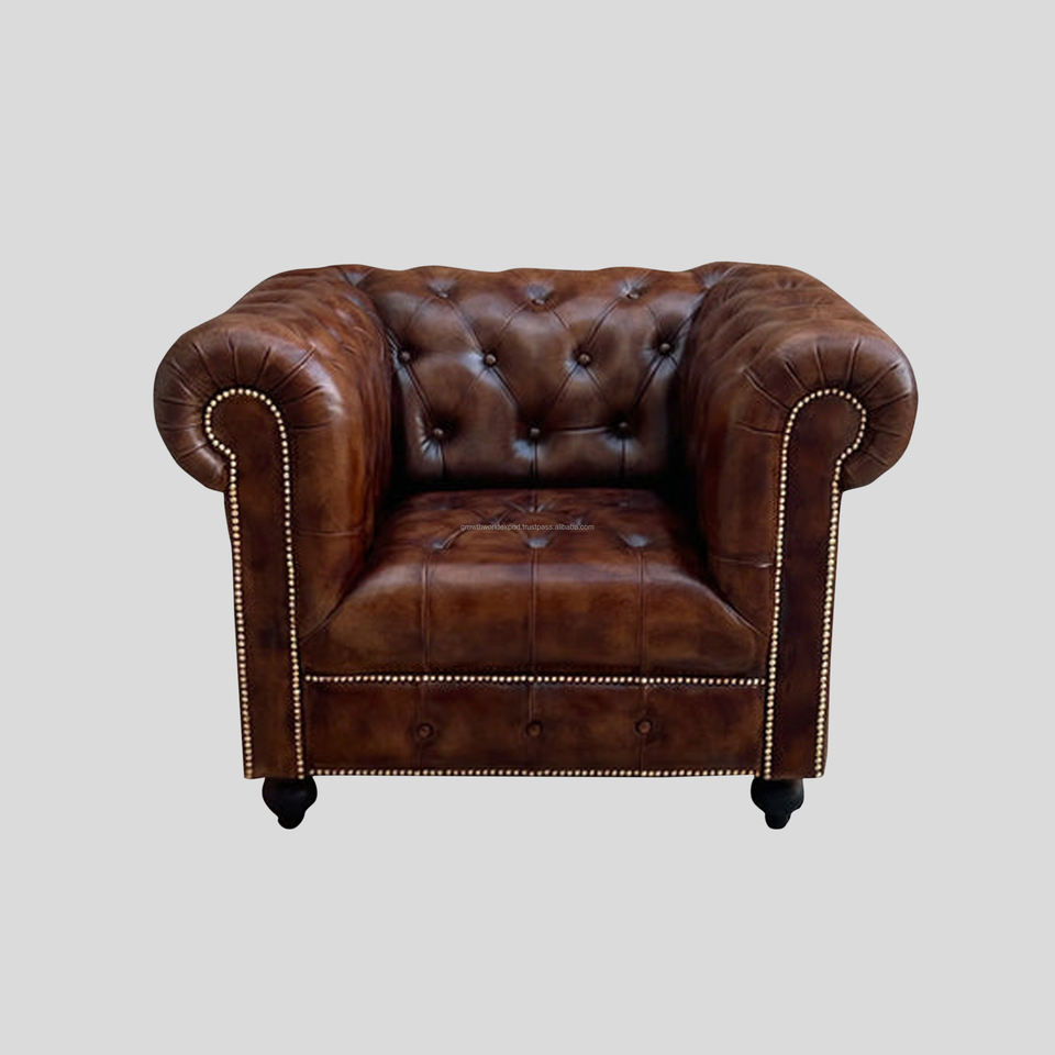 2024 Top Selling Living Room Single Seater Brown Tufted Chesterfield Leather Sofa Chesterfield Restaurant Sofa Vintage Top Sofa